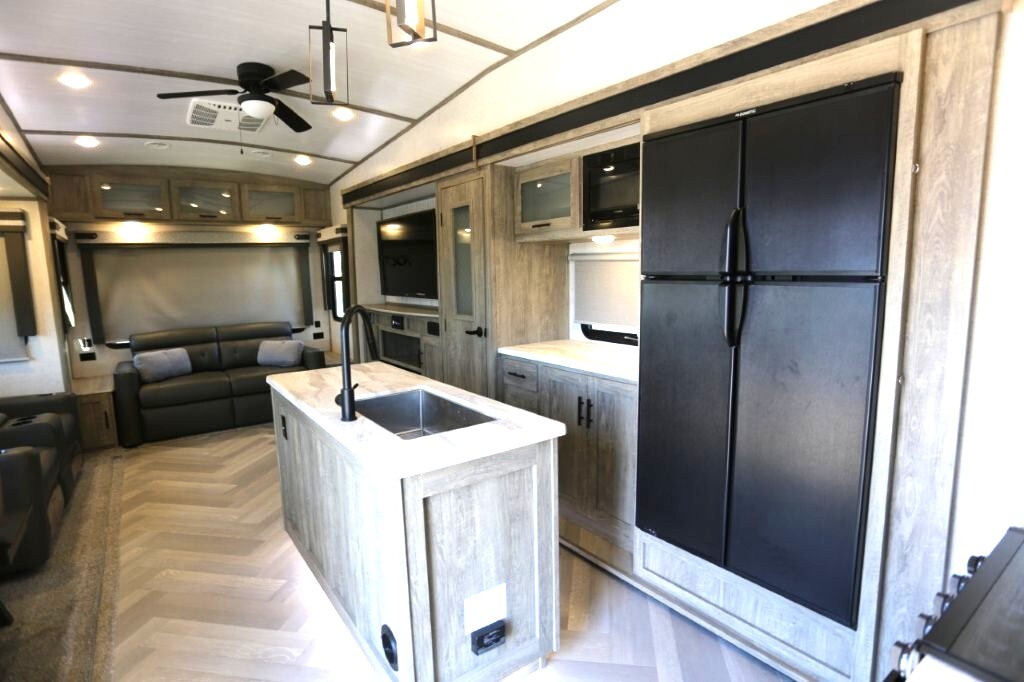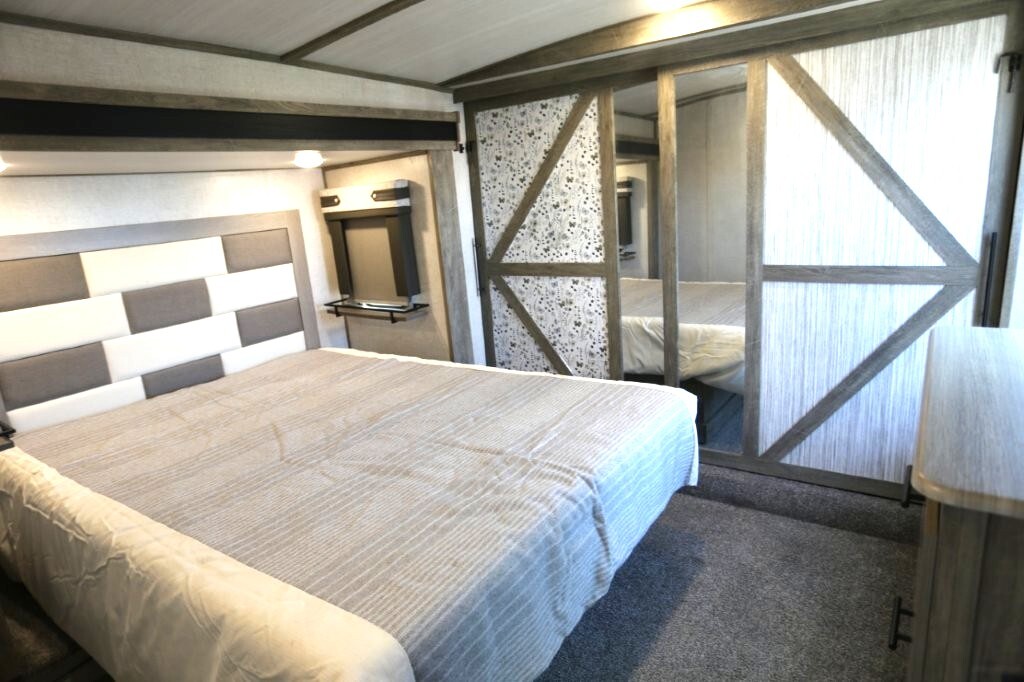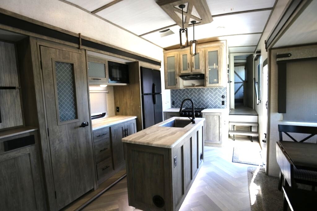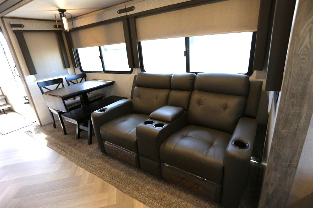 3 Slides, automatic 6 point leveling, Extreme weather package, Unloaded weight 10,797, sleeps 4, Island kitchen, pantry, sofa sleeper, Theater seating, dinette & chairs, Double door fridge, lots of storage, Two Ac's, Solar panel for charging batteries, night shades, all enclosed bathroom, spacious shower, bedroom features walk around queen (room for King) double door closet with washer and dryer hook ups. No smoking. In excellent shape inside and out. Action Line Sales