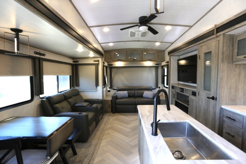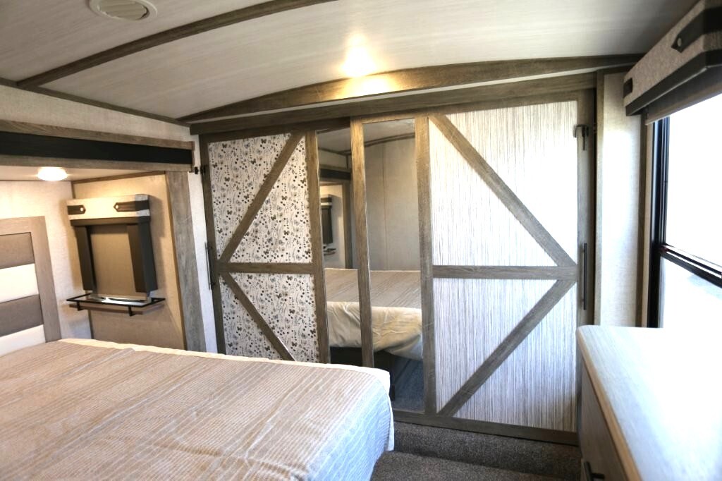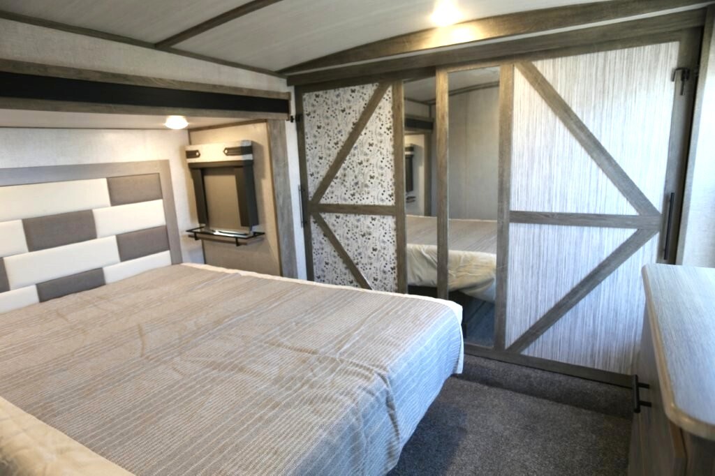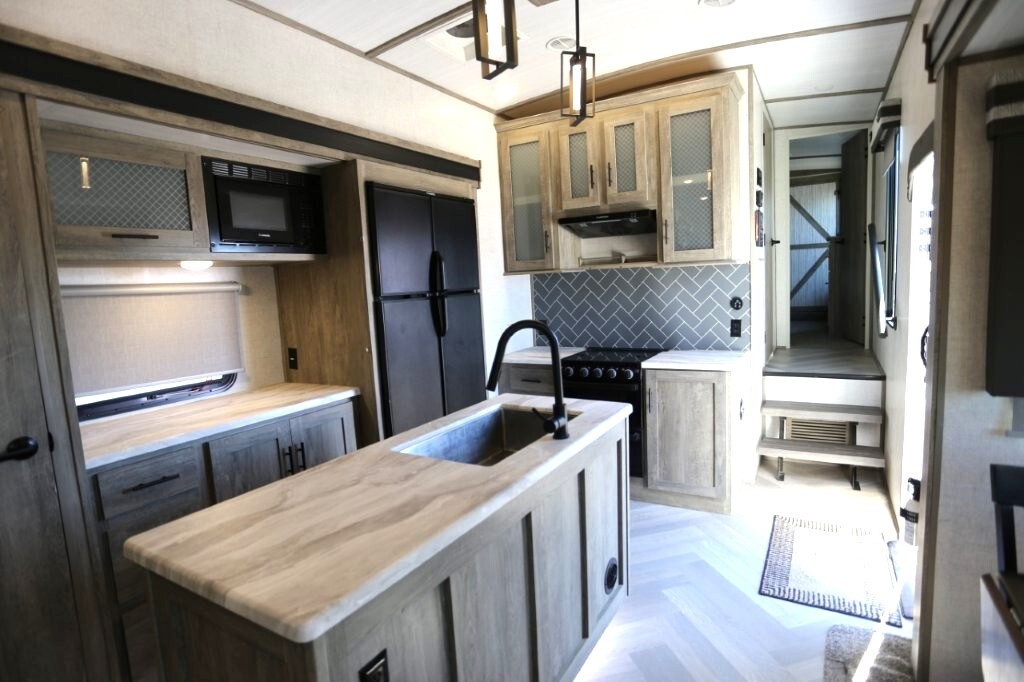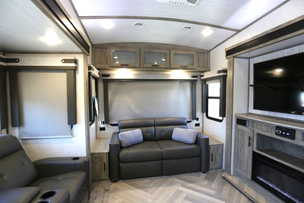 3 Slides, automatic 6 point leveling, Extreme weather package, Unloaded weight 10,797, sleeps 4, Island kitchen, pantry, sofa sleeper, Theater seating, dinette & chairs, Double door fridge, lots of storage, Two Ac's, Solar panel for charging batteries, night shades, all enclosed bathroom, spacious shower, bedroom features walk around queen (room for King) double door closet with washer and dryer hook ups. No smoking. In excellent shape inside and out. Action Line Sales