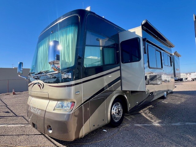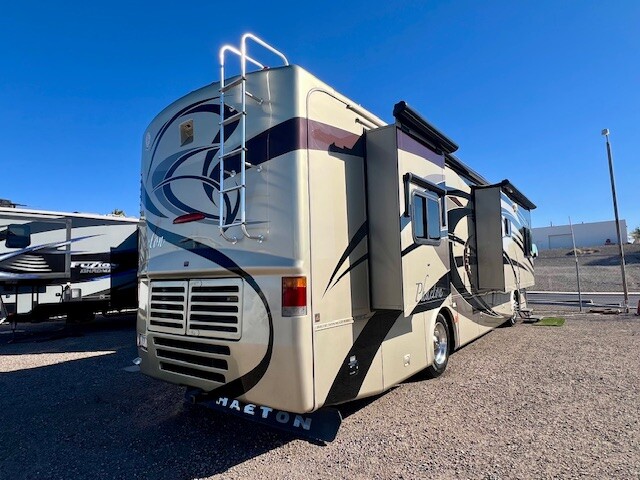 NEW 6 VOLT BATTERIES!!! 2007 Tiffin Allegro Phaeton 36QSH 4 Slides, 350 CAT diesel, 45k, Allison 6 speed transmission, Auto leveling, Full body paint, pass thru storage with sliding tray, outdoor entertainment, 7.5 kw Onan® Manual Slide-Out Generator, Two 15,000 BTU Low Profile Roof Air Conditioners with Heat Pumps, Dual fuel fill, Dual Pane Windows, Back up camera with sound, side cameras, electric patio awning, slide out awning, window awnings, entry door awning, Rock Guard mud flap, ladder, walk on roof, Front entertainment center with surround sound, DVD, Adjustable captain s chairs for comfortable seating in living quarters, 74 Leather Sofa sleeper, 62 Leather sofa sleeper, living room TV s both updated, Satellite in motion DISH, surround sound system, free standing dinette, solid surface counter tops, pull out cutting station, convection microwave, automatic fan, gas grill cook top, 4 door fridge with ice maker, kitchen entertainment updated TV, linen closet, Spacious shower, separate toilet and sink, vanity sink in bedroom, walk around queen mattress, master closet, Spendide washer and dryer combo, TV, 2 AC s dual zone, day and night shades, Tile flooring. Clean inside and out. Newer tires, newer batteries, New engine batteries. Just was fully serviced, Slides serviced all recalls done, K N filter, oil change, Generator full service. Captains chairs show wear. Overall the coach is clean and in excellent shape. Coach is clean and in overall very sound. No dealers. I can help with financing if needed, Title in Hand. Clean Title In Hand. WILL TRADE FOR CLASS B OR CLASS C TIFFIN WAYFARER OR CLASS B MERCEDES DIESEL SPRINTER