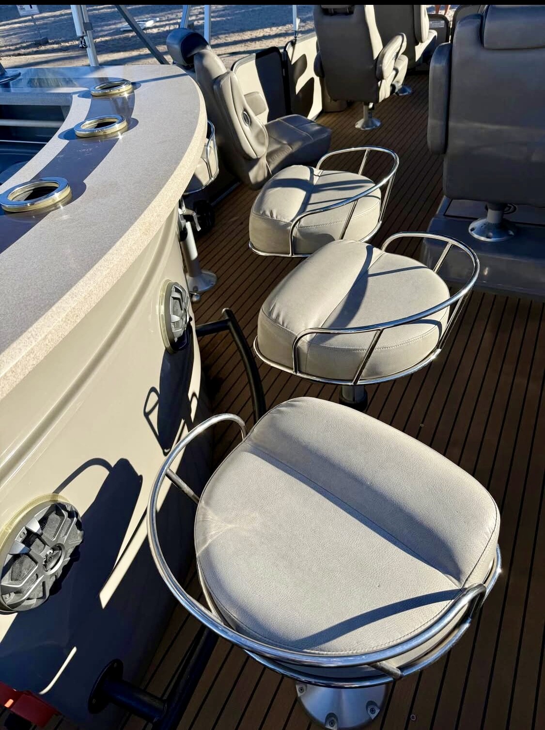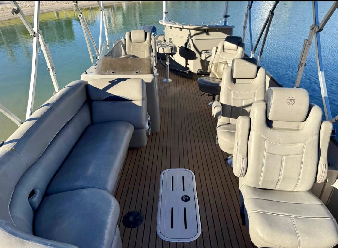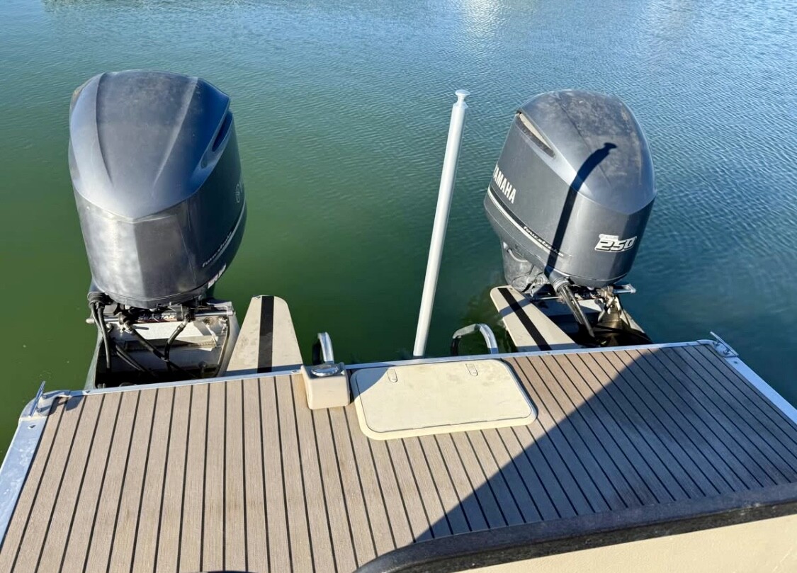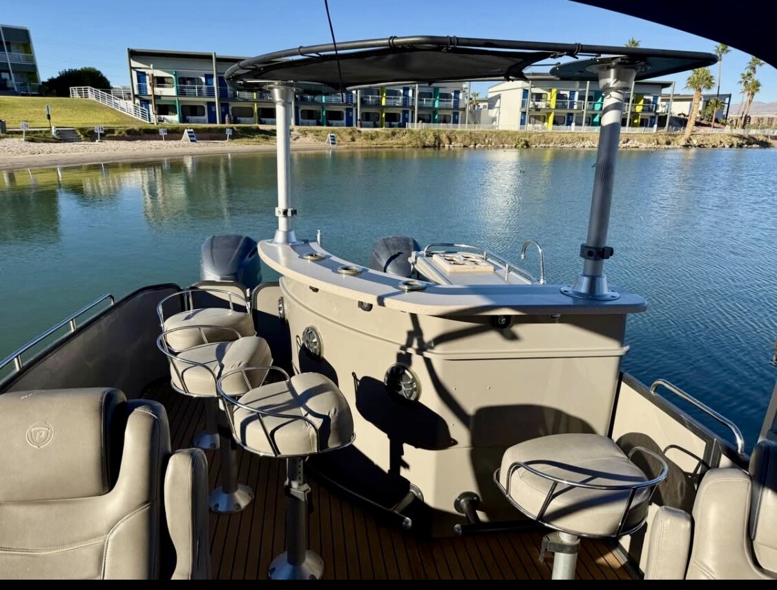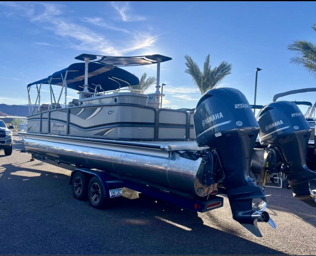 2016 Premiere Grand Entertainer 260 This tri-toon boat is super clean, super stable and has just 250 hours on the twin Yamaha 250hp outboards. Full service was just done on both engines with receipts. This boat has double custom Bimini tops that were done by seam dreams in Lake Havasu. It also has a full 4 seat bar in the rear of the boat that is equipped with everything you need to have a great day on the lake. This boat comes with the full Polk audio system with subwoofers and LED lights throughout the entire boat, including the speakers and underwater lights. The boat is sitting on an Extreme tandem axle trailer with custom wheels and disc brakes. This is a smoking deal on a super nice boat!! Top speed 59 mph. Quickly gets up to 55 MPH comfortable cruising speed. Please let me know if you have any questions. ****delivery and financing are also available.****