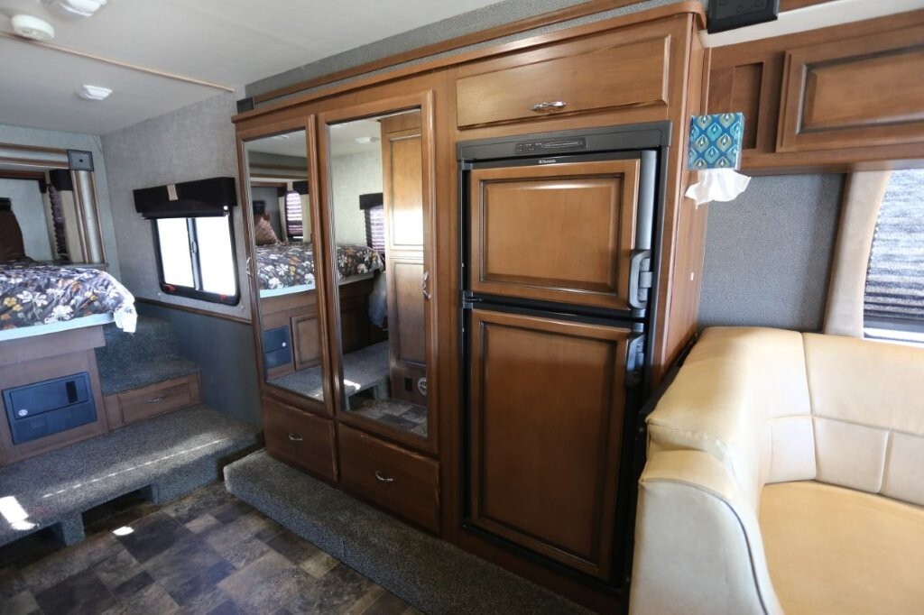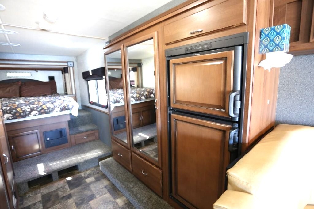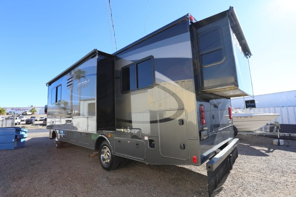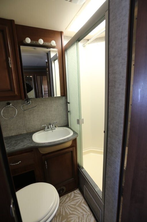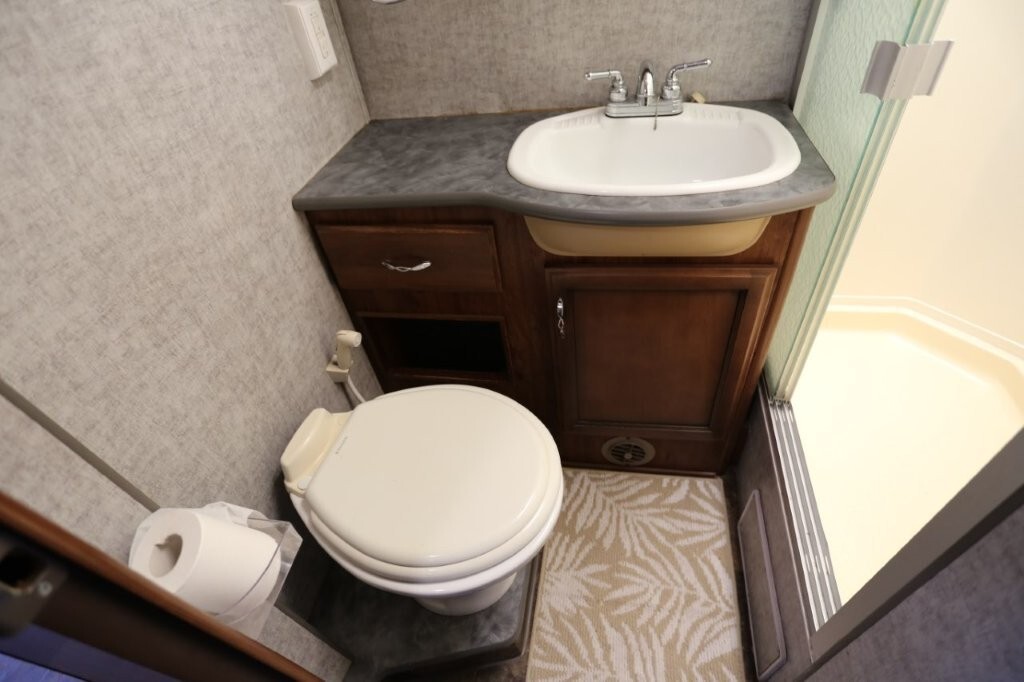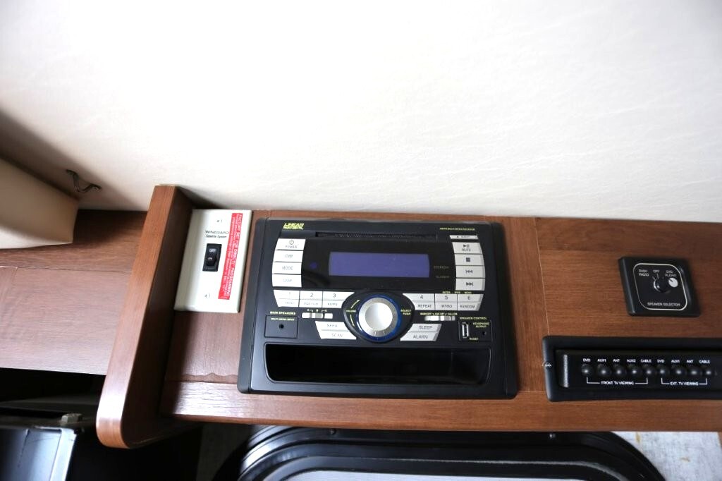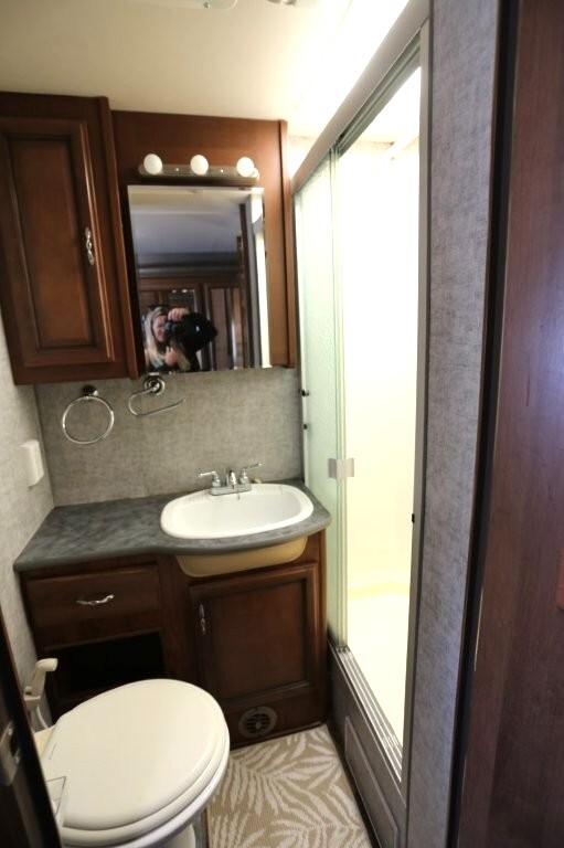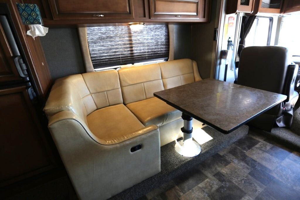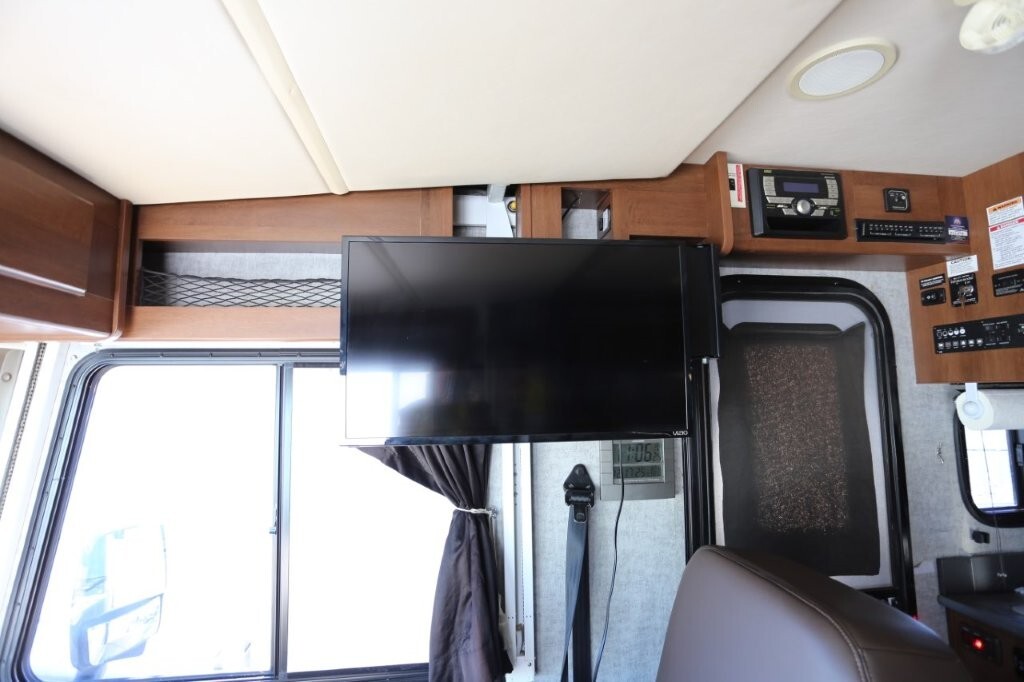 Ford V10, 27k, sleeps 5, two slides, onan micro quite 4000 generator, 28.8 feet long, full body paint in excellent shape, power awning, side cameras, back up camera, basement store with easy clean compartments, awning slide toppers, back up camera, hitch receiver, newer tires, newer batteries, drop down bed over cab, Tv on swivel, Winegard satellite, Bluetooth stereo, dvd and Cd player, automatic leveling system, inverter 3000 also in bedroom, microwave with hood vent, fridge, gas grill cooktop, oven, solid surface counters, dinette with movable swivel table, night shades, added surge electric strips for power in convenient places thru RV, all enclosed bathroom, low step shower, walk around queen bed, TV in master, closet, linen closets. Clean inside and out. No smokers, no rust, no damage. Couch shows some wear as seen in images on the arms.