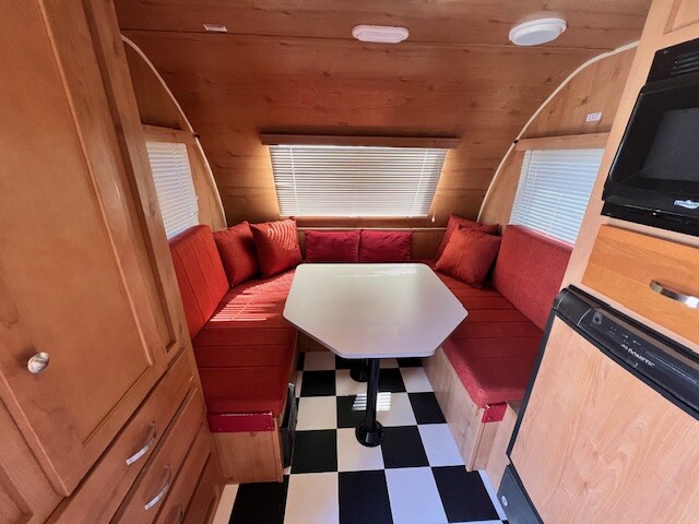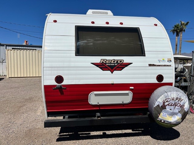 This Light weight trailer only weighs 3700 lbs fully loaded! Fully self contained, sleeps 2 comfortably, Dinette makes into a queen bed, Stereo system, Microwave, fridge, gas grill cook top stove, AC, Furnace, water heater, water pump, bathroom with shower, linen closets, linen drawers, single axle, outdoor LP hook up, exterior shower. Newer tires. New upgraded added awning, Electric tongue, Clean inside and out!